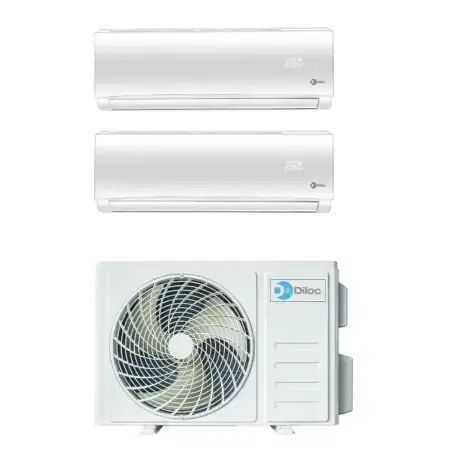 Condizionatore d'Aria Dual Split Diloc 10001-12000 Btu Inverter R32 A+++ Wi-Fi Opzionale Raffreddamento Riscaldamento Risparmio Energetico Elettrico