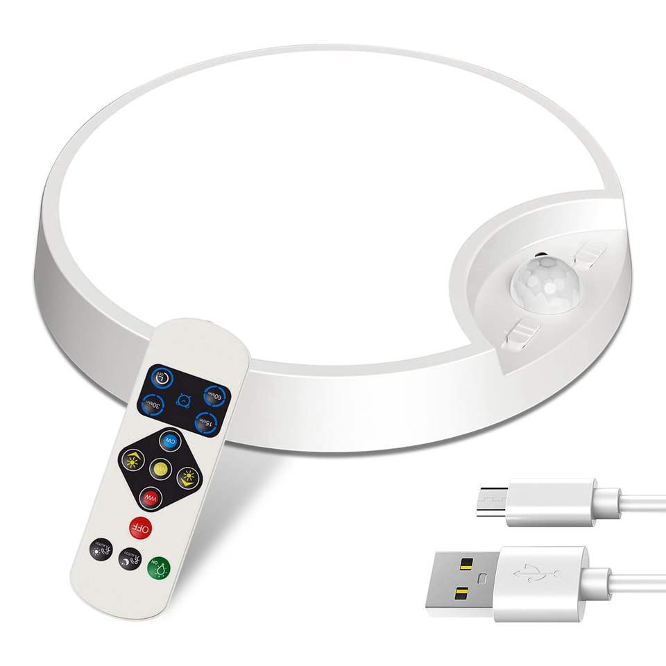 Plafoniera LED Dimmerabile con Sensore di Movimento, Ricaricabile e Timer Remoto, Stile Moderno