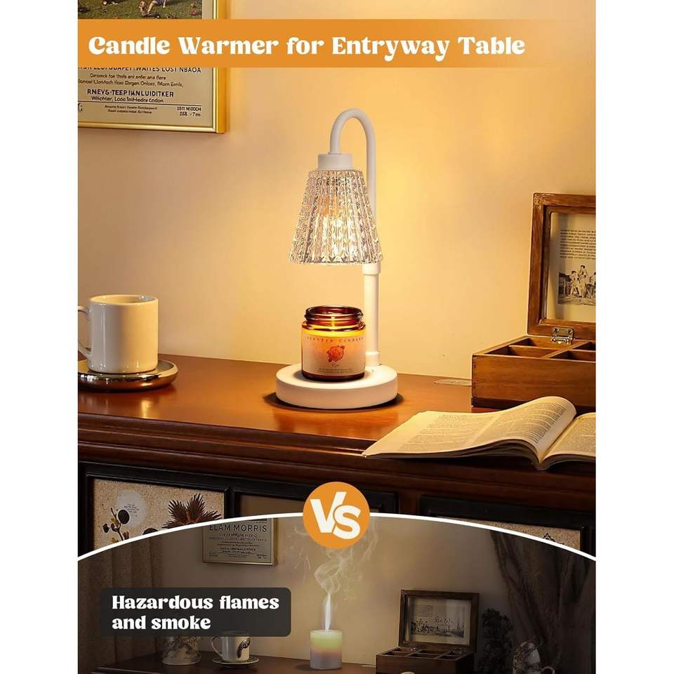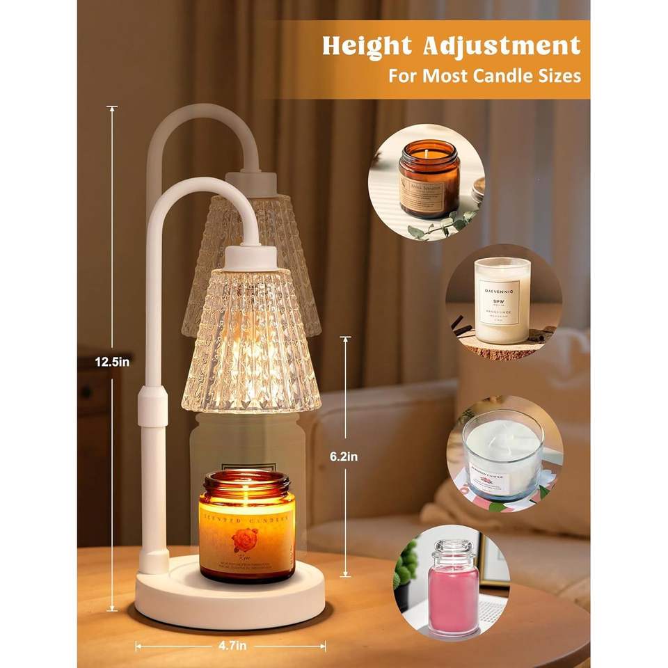 Lampada Scaldacera Dimmerabile in Cristallo Bianco con Timer, Altezza Regolabile, per Candele in Barattolo - Prodotto per Candele