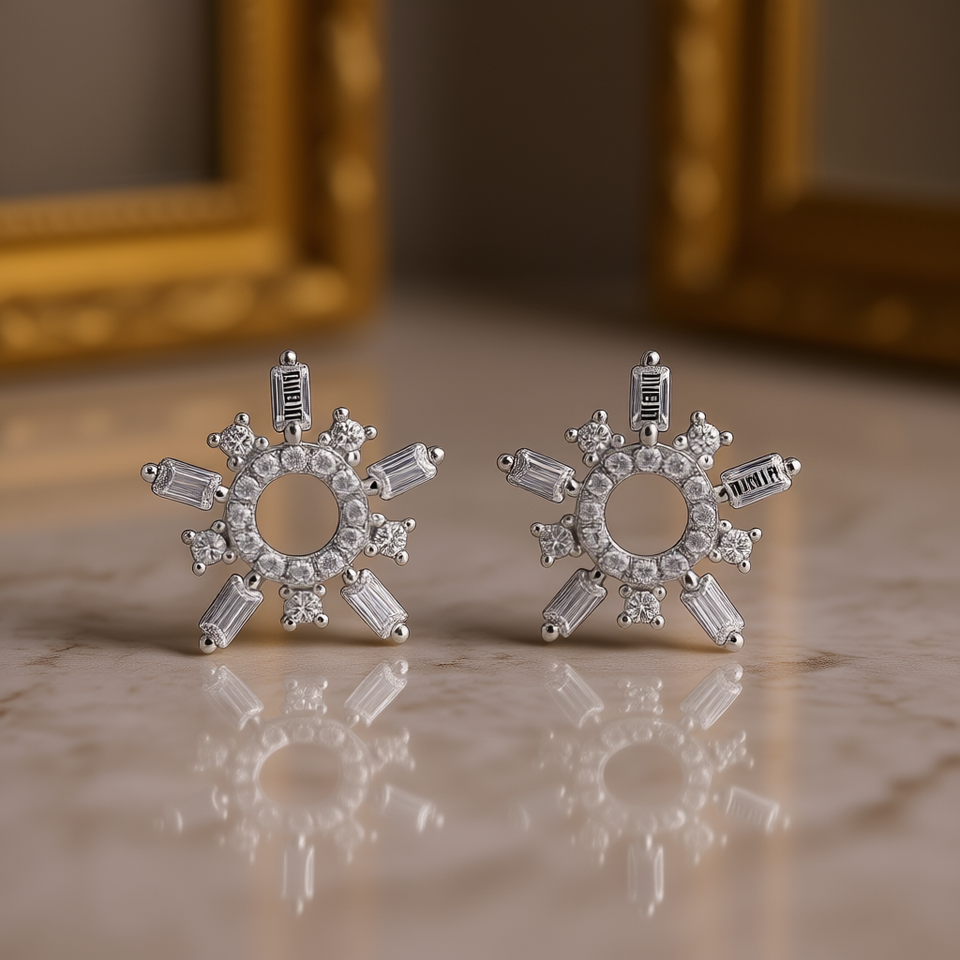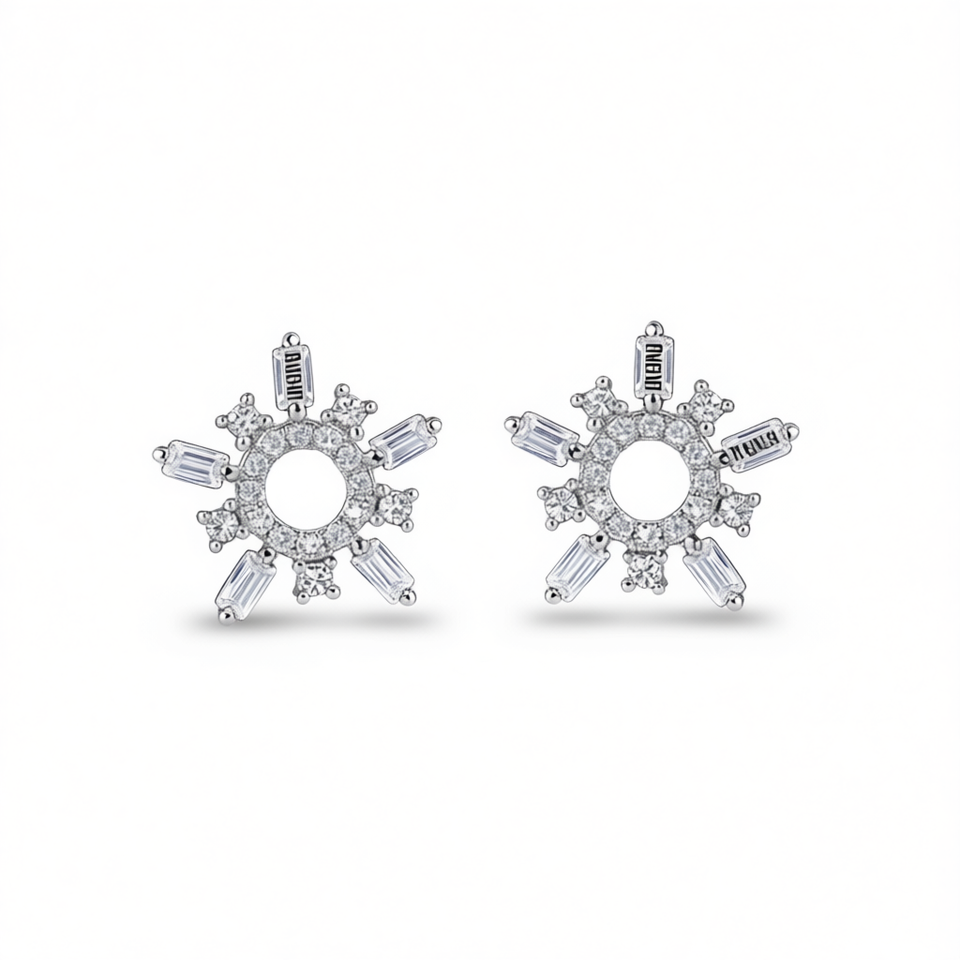 Dineng Snowflake Stud Earrings White Diamond Baguette Cut Claw Setting Classic Women's Everyday Wear Fine Jewelry