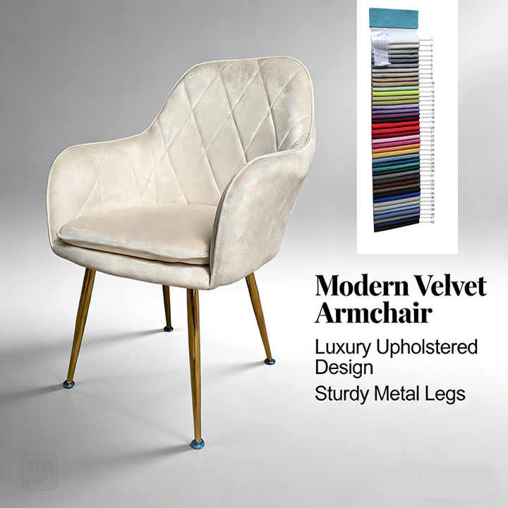 Sedia da Pranzo in Velluto con Schienale Imbottito e Gambe in Metallo, Poltrona per Sala da Pranzo e Cucina, Produzione Diretta