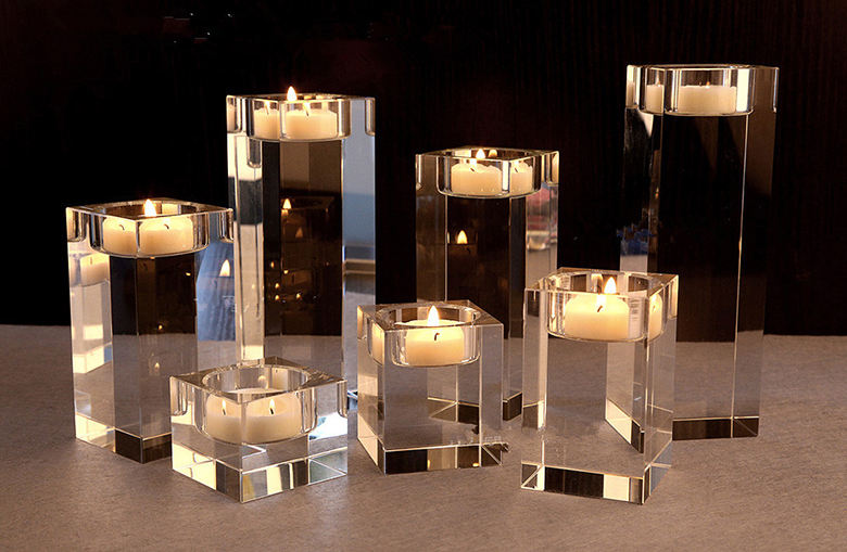 Portacandele in Cristallo Solido Trasparente per Tavolo da Pranzo