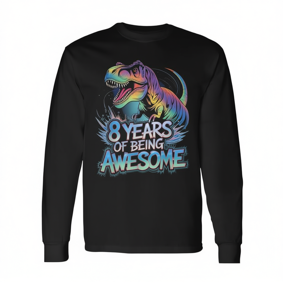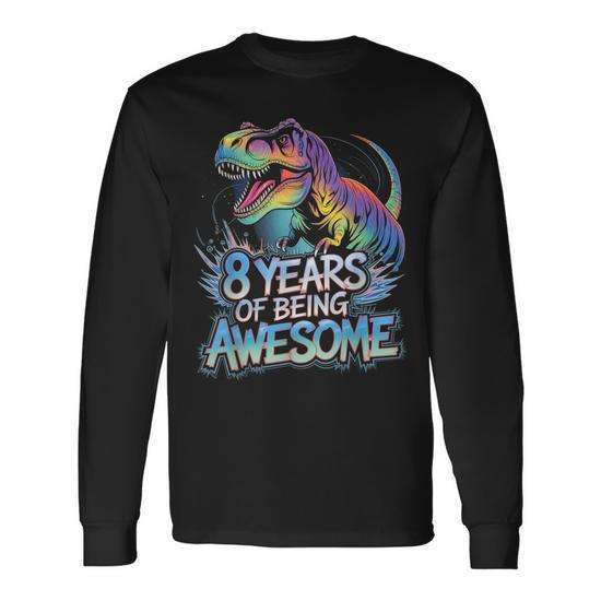 T-shirt a maniche lunghe per il 8° compleanno dei dinosauri per ragazzi, maglietta per il 8° compleanno