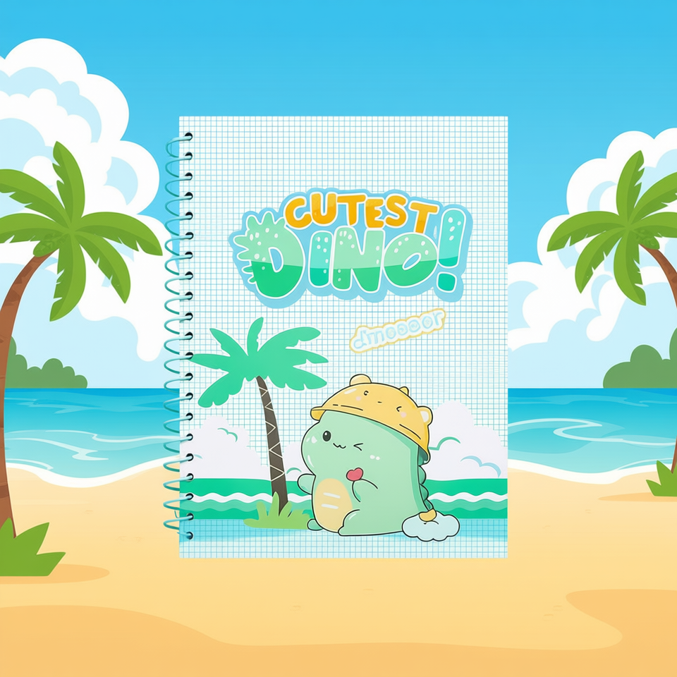 Dinosaur Notebook A4 5mm Grid 100 Pages Spiral Binding Cute Dino Design For Kids School Use