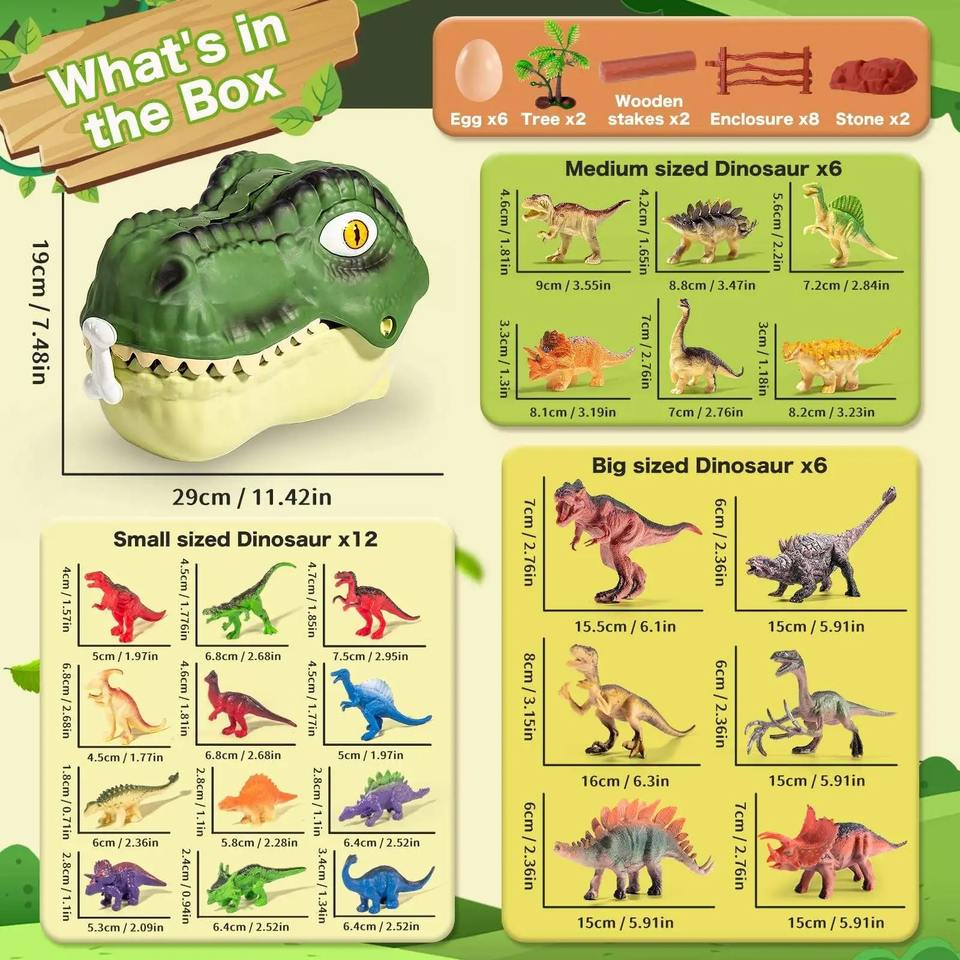 Giocattolo statuette modello animale di simulazione di dinosauro include Dino Aufbewahrungs Box il mondo dei dinosauri giocattoli regalo per bambini