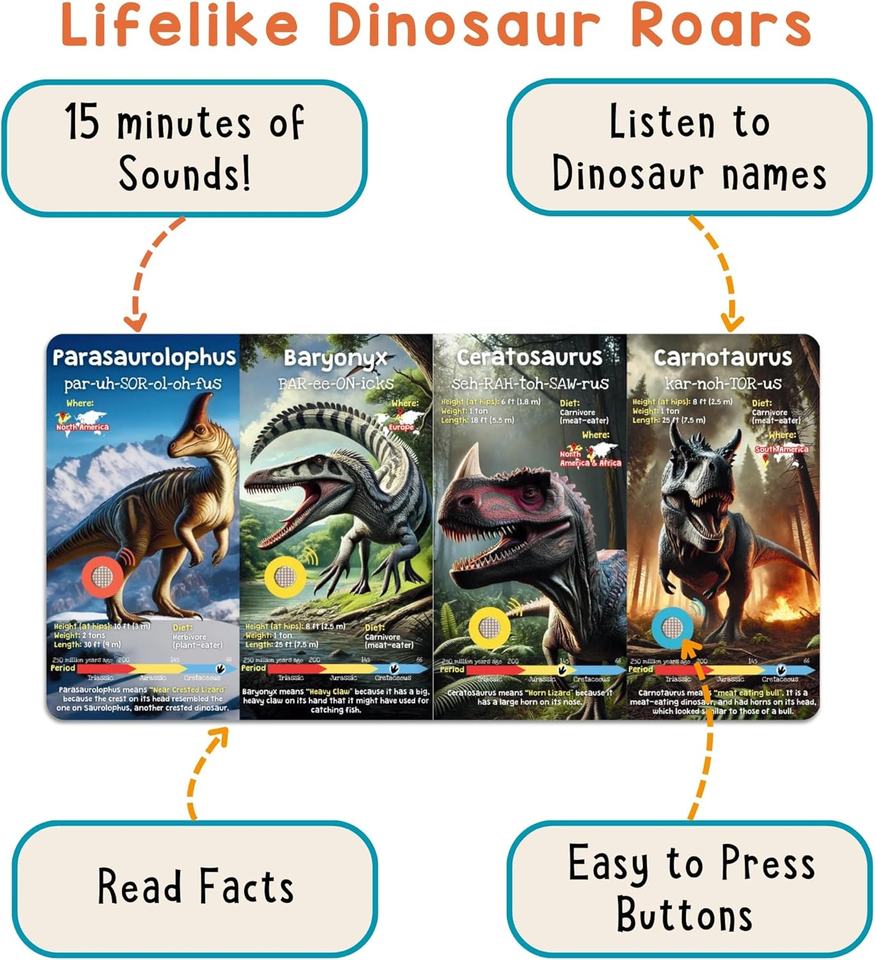 Dinosaur Sound Book for Kids 28 Realistic Sounds. Explore Land Sky and Sea Dinosaurs
