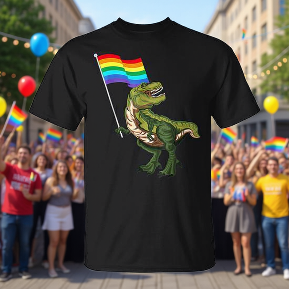 T-shirt a tema dinosauri per il Mese dell'Orgoglio Gay, Lesbico, LGBT, Transgender per uso promozionale