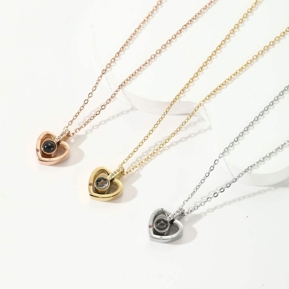 Direct Factory Price Trendy Zircon Fashion Necklace with Custom Text Love Heart Projection Pendant Jewelry Gift