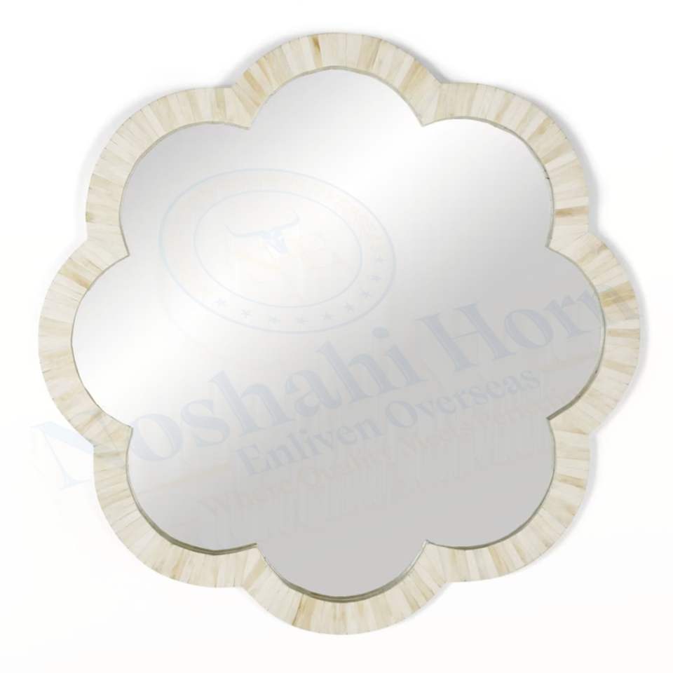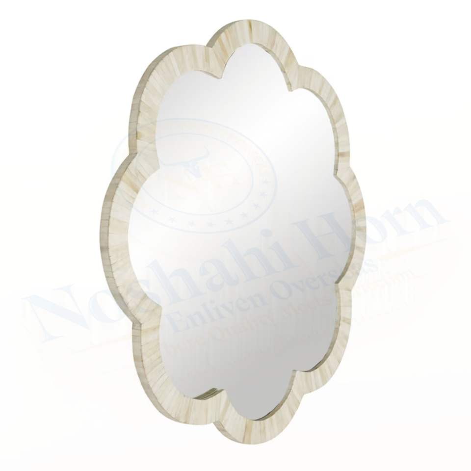 Vendita diretta della fabbrica di alta qualità madreperla intarsio decorativo specchio da parete con un Design ispirato al corno