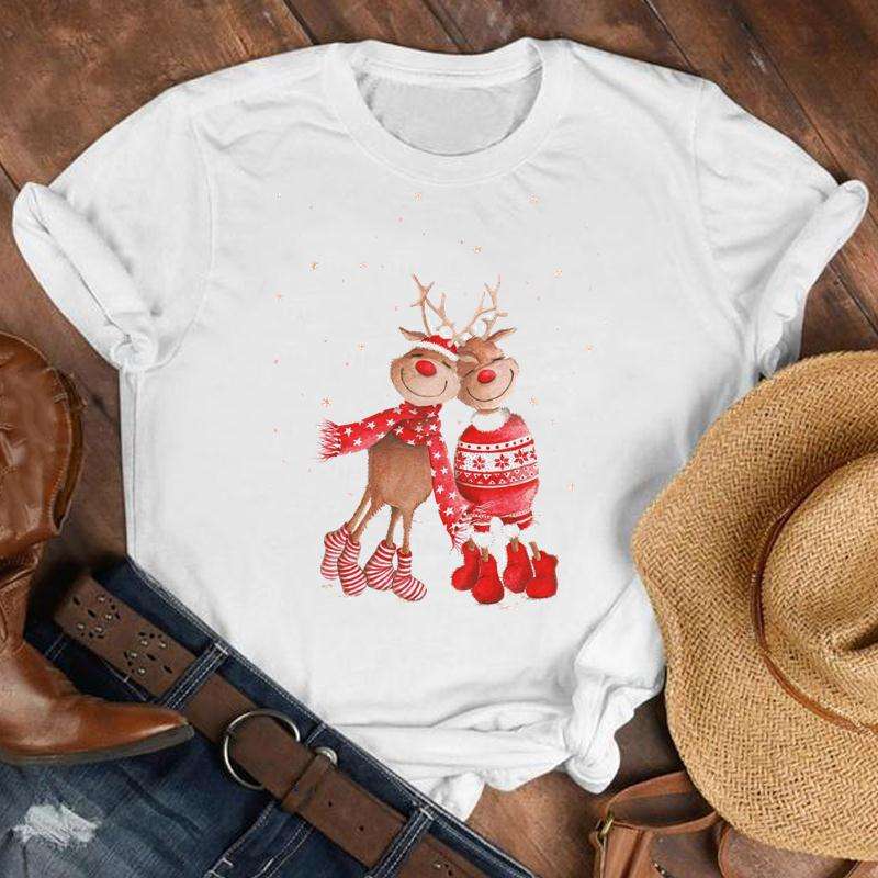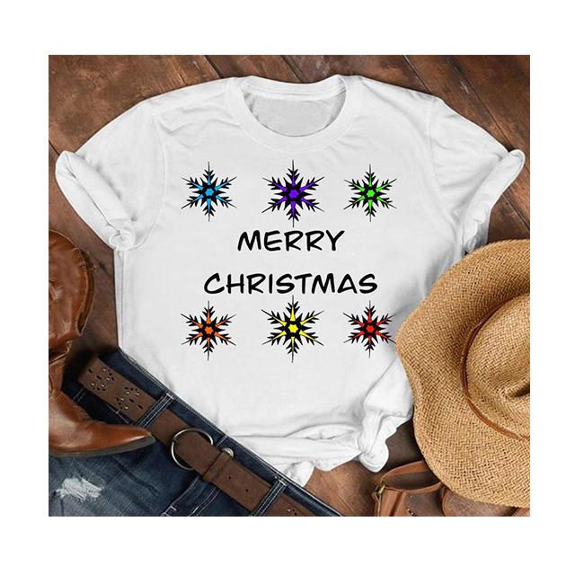 Vendita diretta della fabbrica estate Vintage retrò donna O-College oversize t-shirt tema natalizio stampato con decorazione a bottone