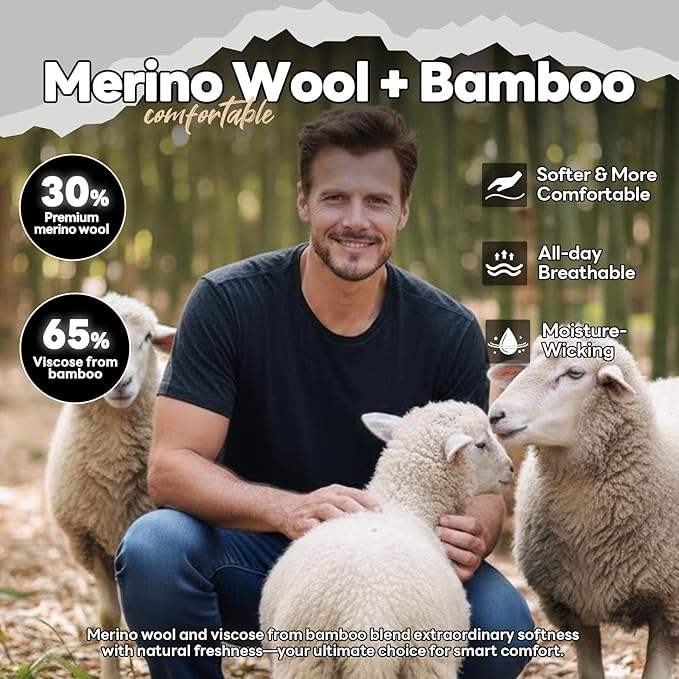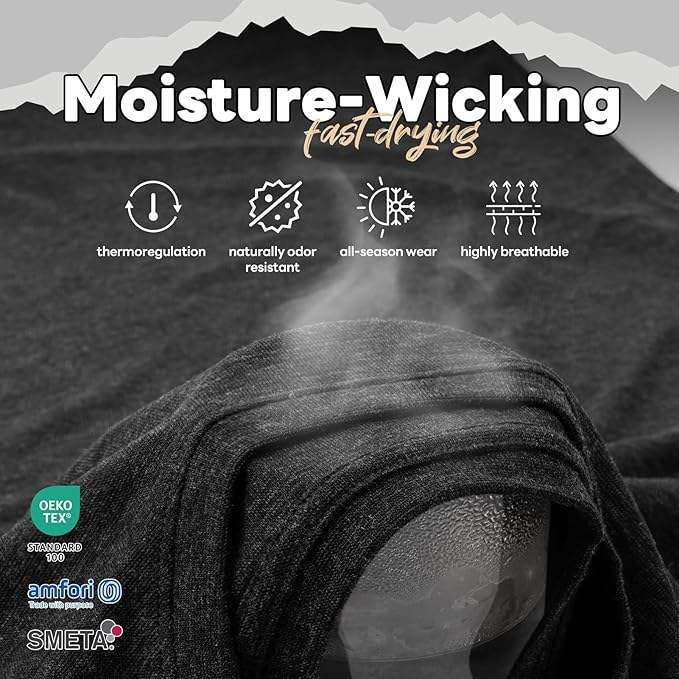 Magliette 100% Lana Merino per Uomo, Produzione Diretta, Resistenti agli Odori, Strato Base Leggero per Escursionismo e Viaggi