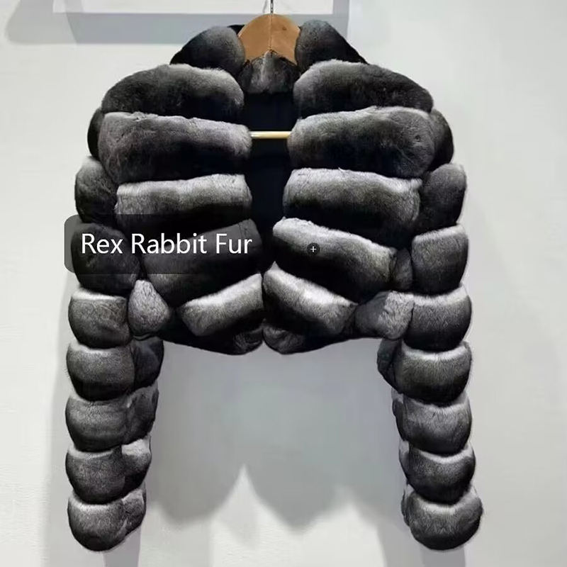 Vendita Diretta Cappotto di Lusso in Vera Pelliccia di Coniglio, Modello Corto per l'Inverno