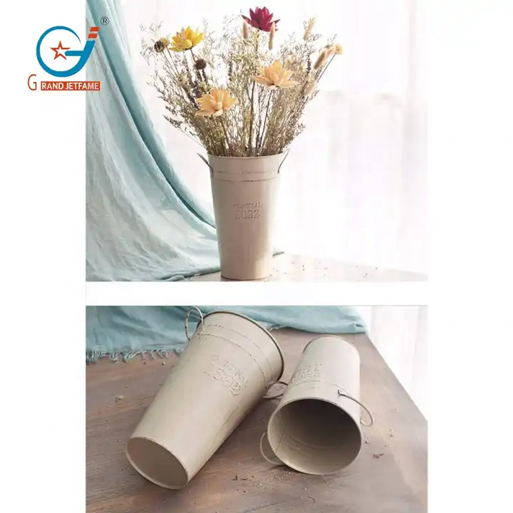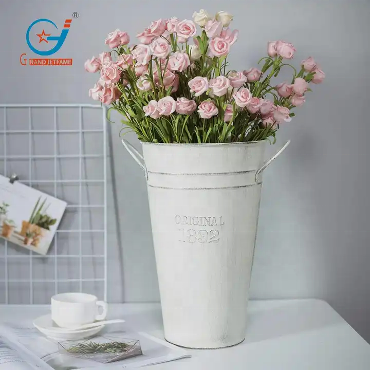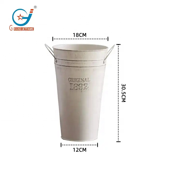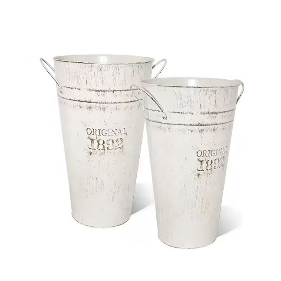 Vendita diretta da 1.7 galloni Retro in metallo zincato vaso con manico Vintage decorazione da parete secchio fioriere da giardino