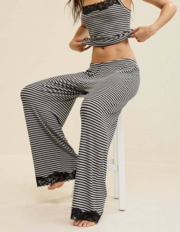 Direct Selling Organic Cotton Pajamas, Sleepwear with Lace Trim, High-quality Knitted Cotton Women's Pajama Set