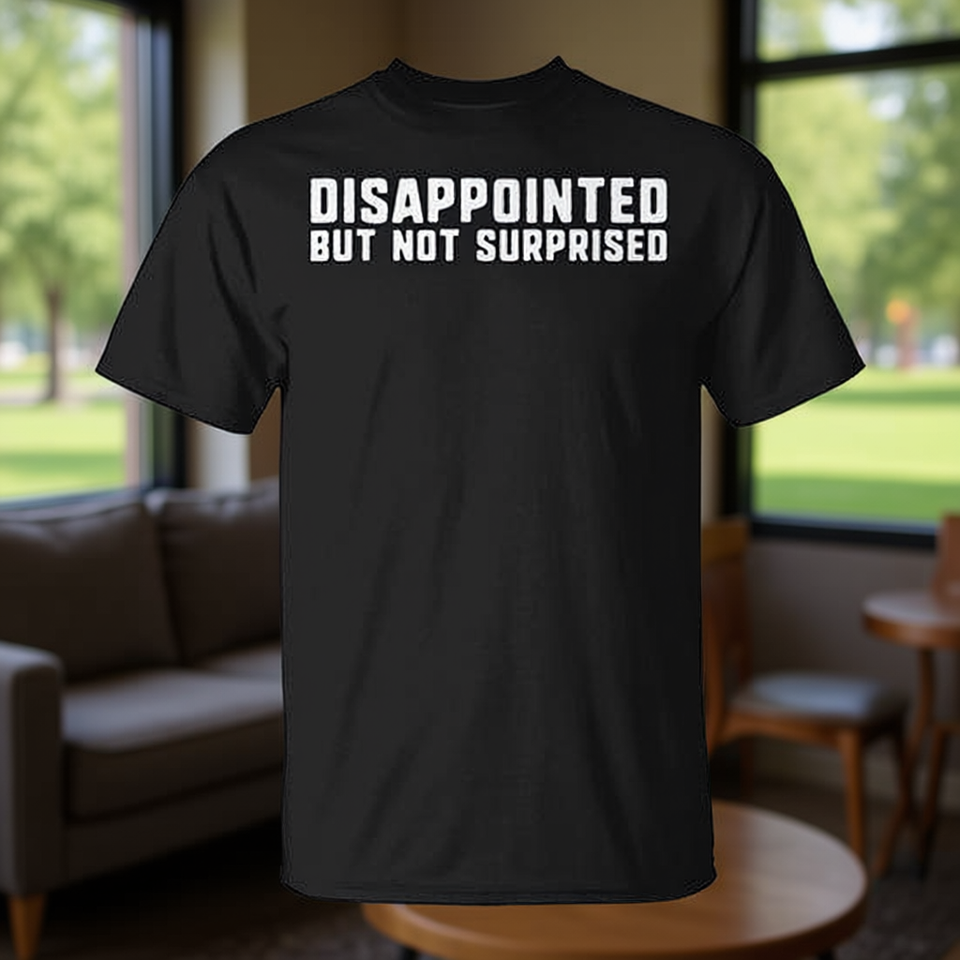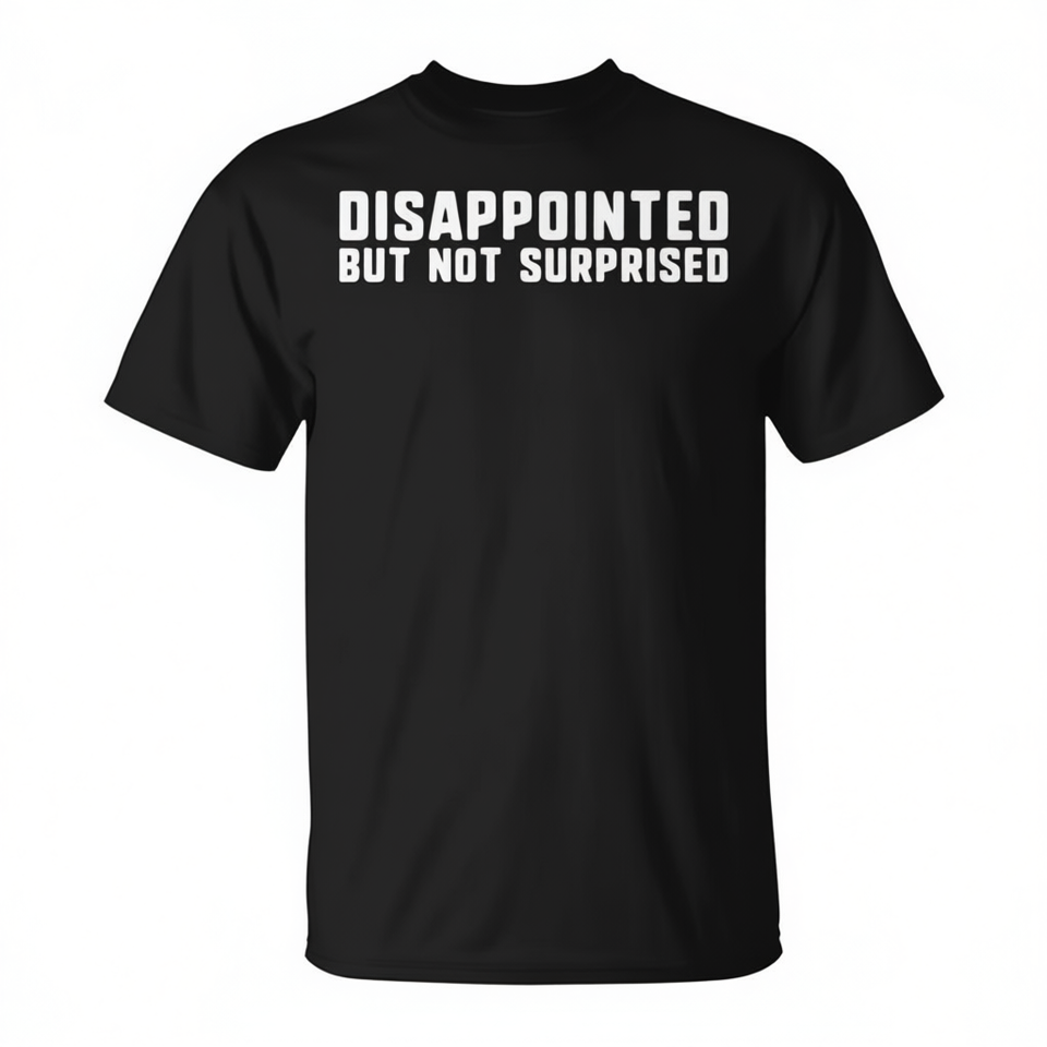T-shirt con slogan divertente: Disappointed But Not Surprised, design divertente, taglia unisex per adulti