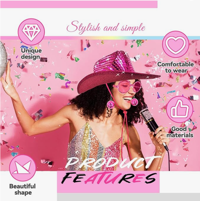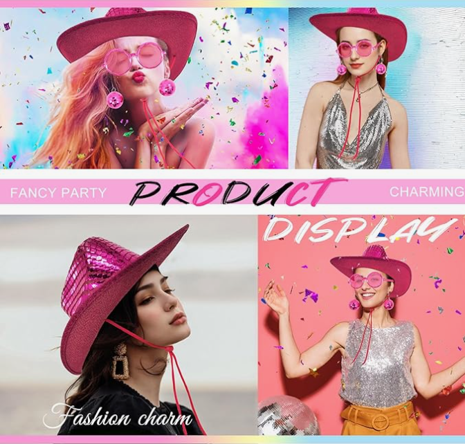 Disco Western cappello da Cowboy con paillettes occhiali da sole a specchio accessorio perfetto per abbigliamento uomo donna per feste di ruolo