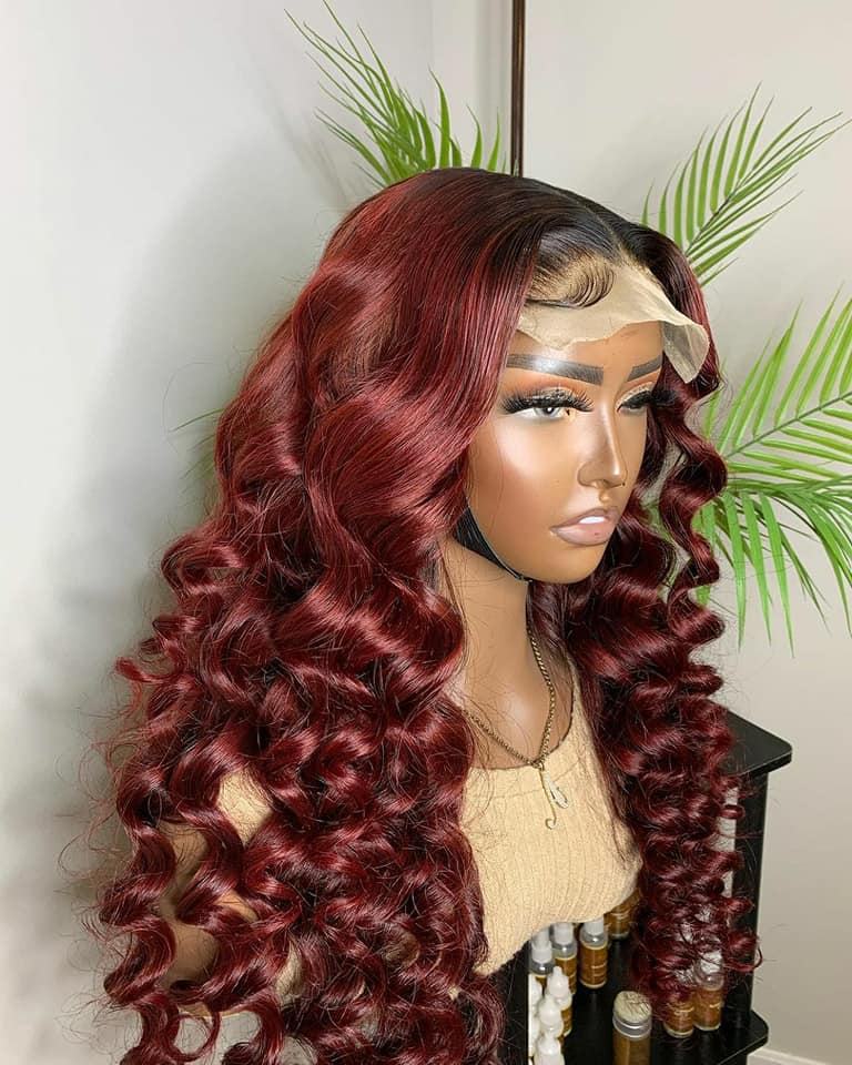 Discount Deal 12A Grade Ombre Dark 99J Color Deep Loose Wave Virgin Cuticle Aligned Human Hair 360 Lace Wigs