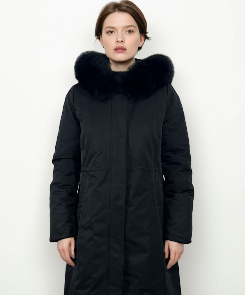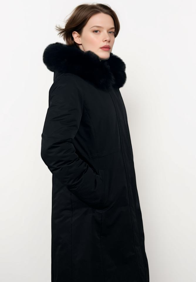 Long slim-fit down jacket, stylish and warm, designed