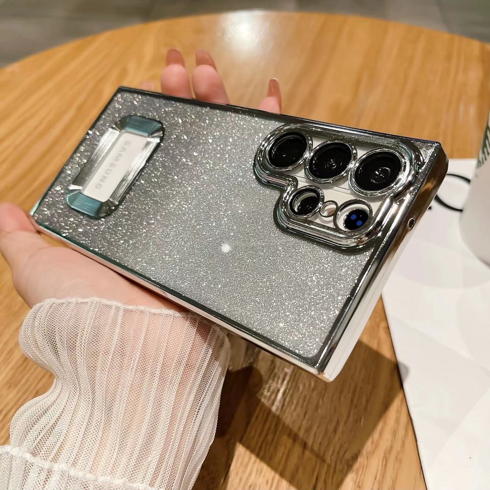 Display brand CD print custodia per cellulare cover protettiva per lenti placcata con glitter sfumati per Samsung S23Ultra A22 A52