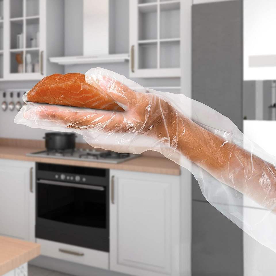 Disposable 22\" Elbow Safety Gloves 1000 Pack Clear Plastic 1.1 Mil Polyethylene Flared Cuff for Food Service Areas