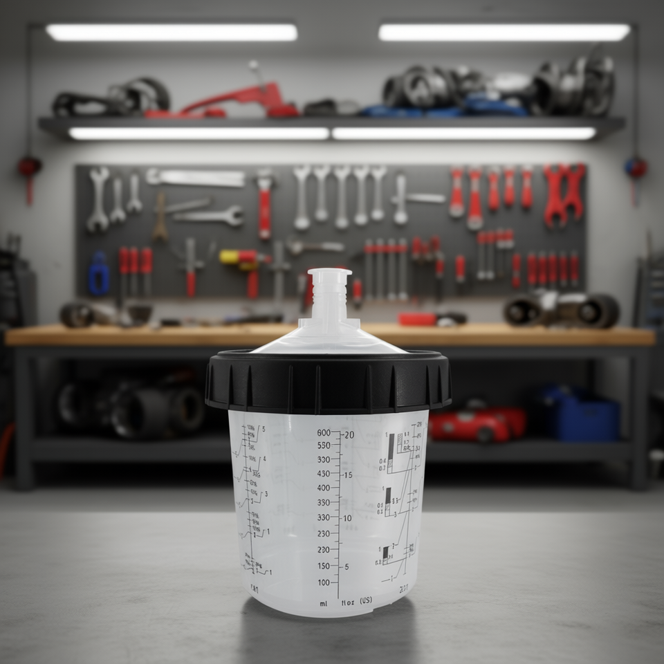 Pistola a Spruzzo Monouso per Auto 600ml a Gravità con 50 Rivestimenti, 50 Coperchi, 1 Tazza Rigida, 20 Tappi e Anello di Fissaggio