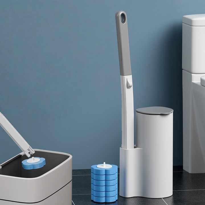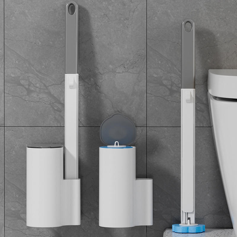 Disposable Plastic Toilet Brush with Wall-mounted, Throwaway Replacement Heads for Thorough, Convenient Cleaning
