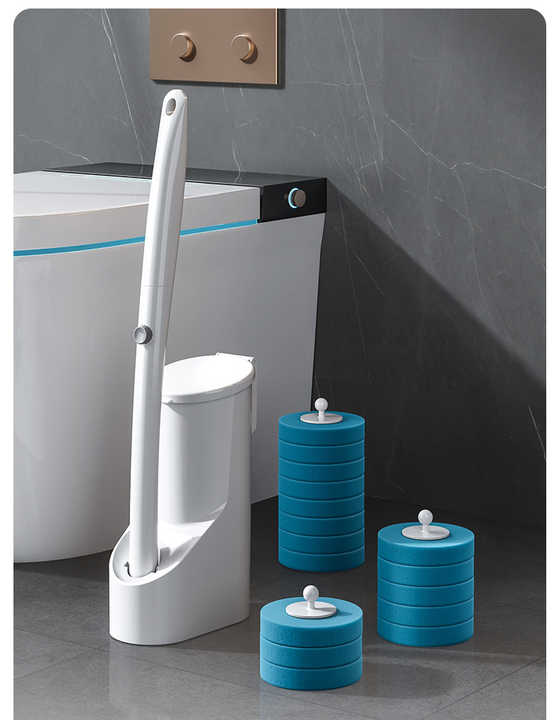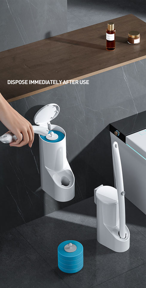 Disposable Toilet Brush Kit With 8 Replacement Heads Toilet Bowl Brush for Bathroom Cleaning