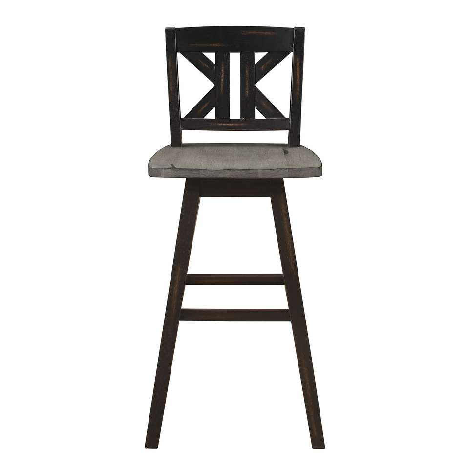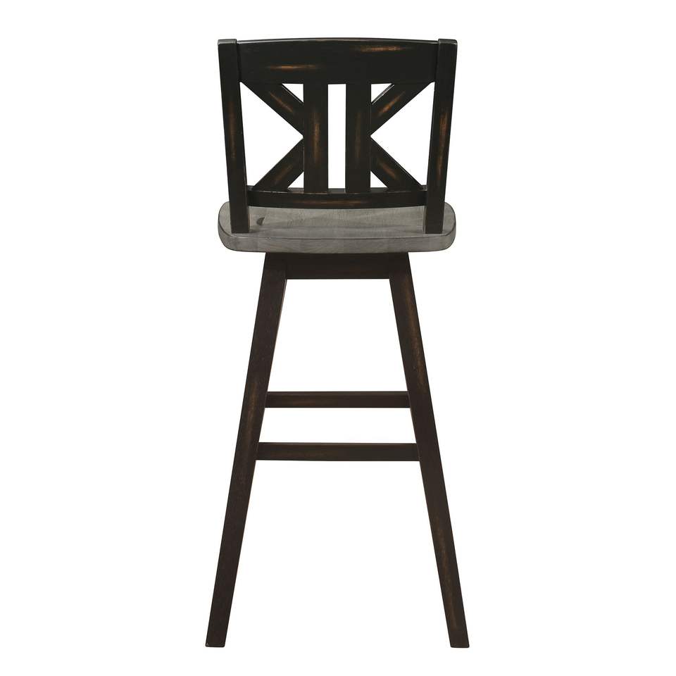 Set di 2 Sgabelli da Bar Girevoli Grigio Nero Effetto Invecchiato, Altezza Standard, Schienale a X, Girevoli a 360 Gradi, in Legno Massello di Gomma