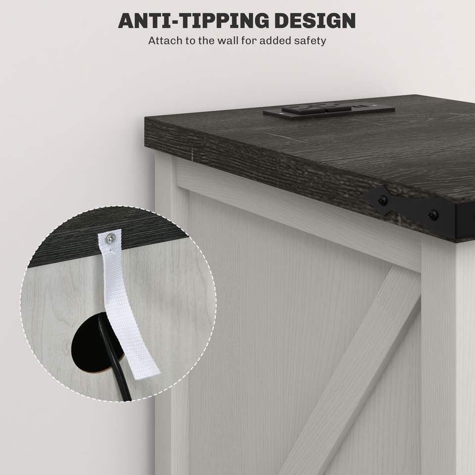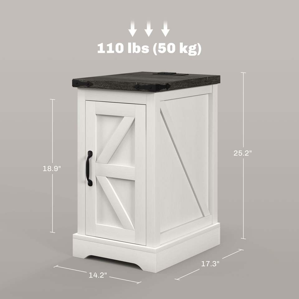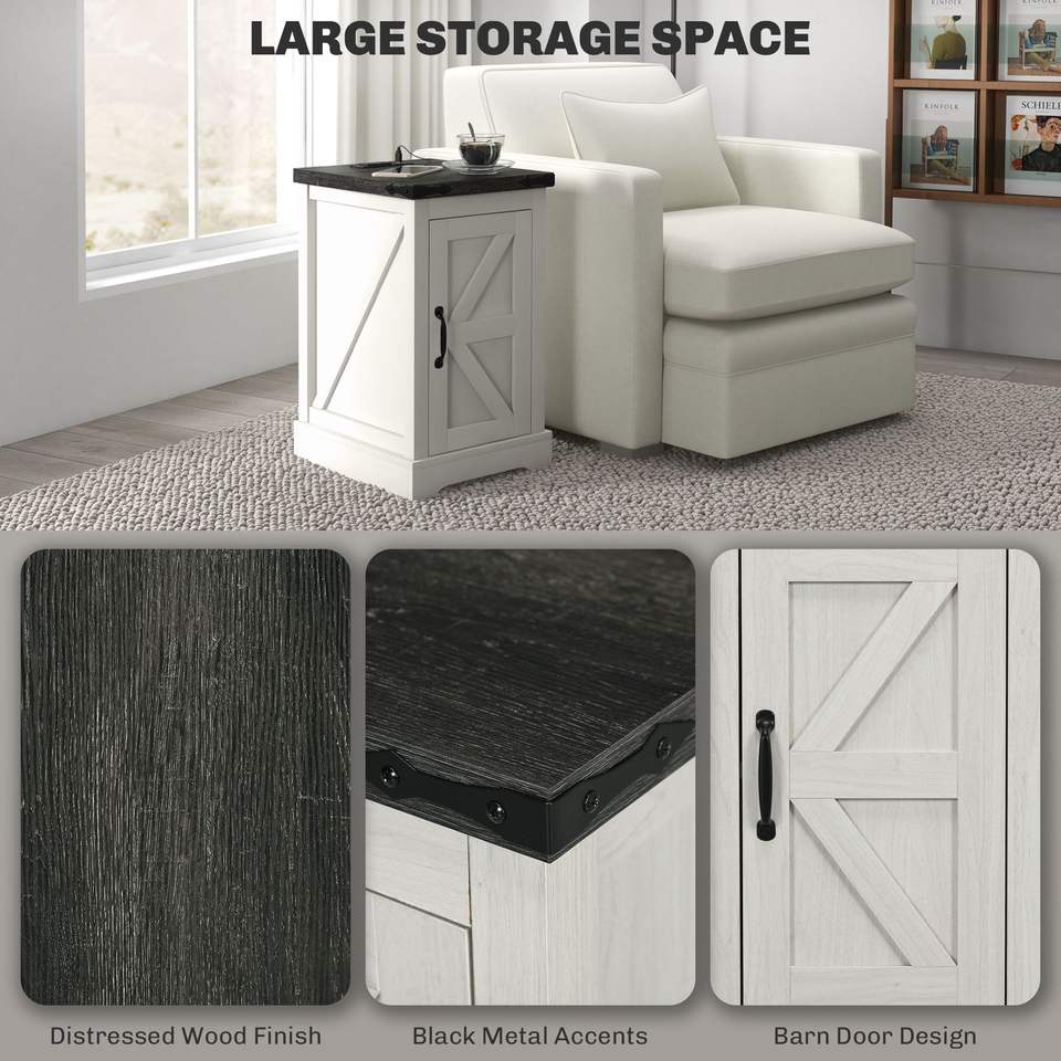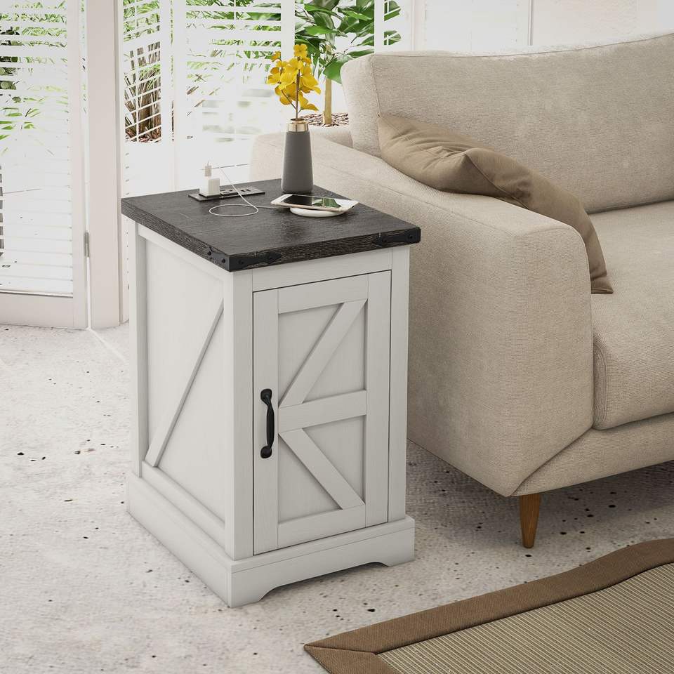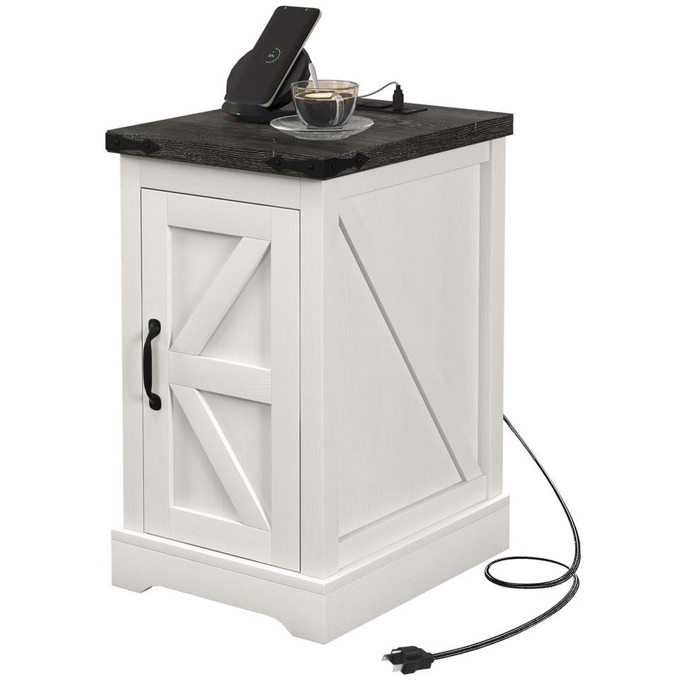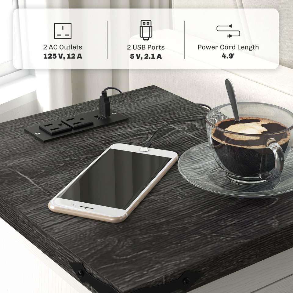 Tavolino da Salotto Rustico Bianco con Effetto Invecchiato, con Vano Portaoggetti, Stazione di Ricarica e Porte USB per Uso in Soggiorno