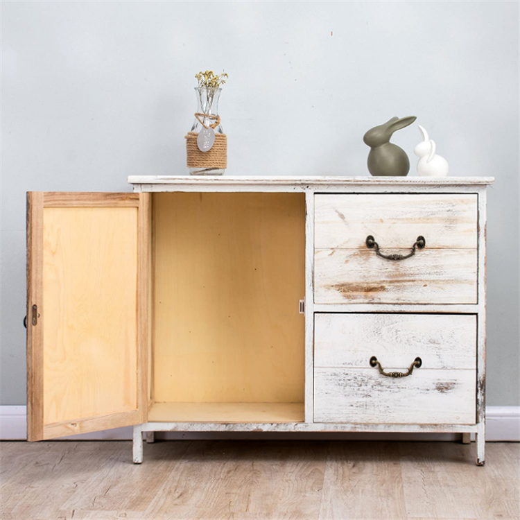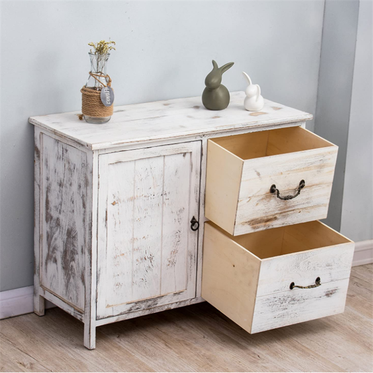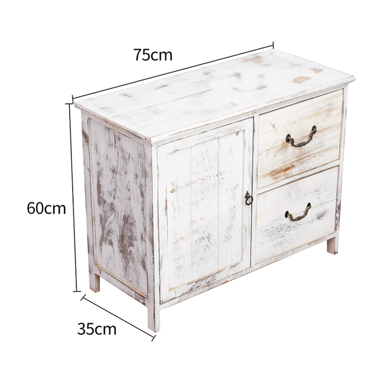 Credenza in Legno di Paulownia Bianco Invecchiato Stile Shabby Chic Mobile Antico in Legno Massello