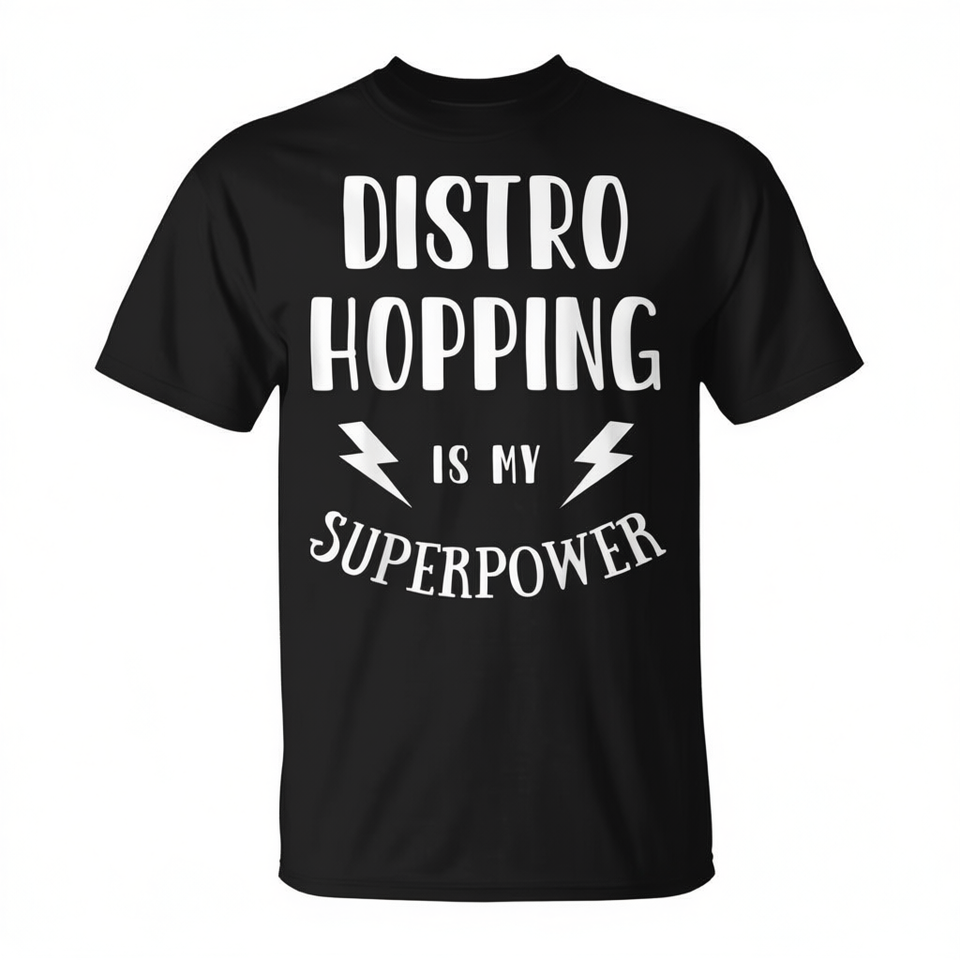 T-shirt Distro Hopping Is My Superpower da uomo, nera, 100% cotone