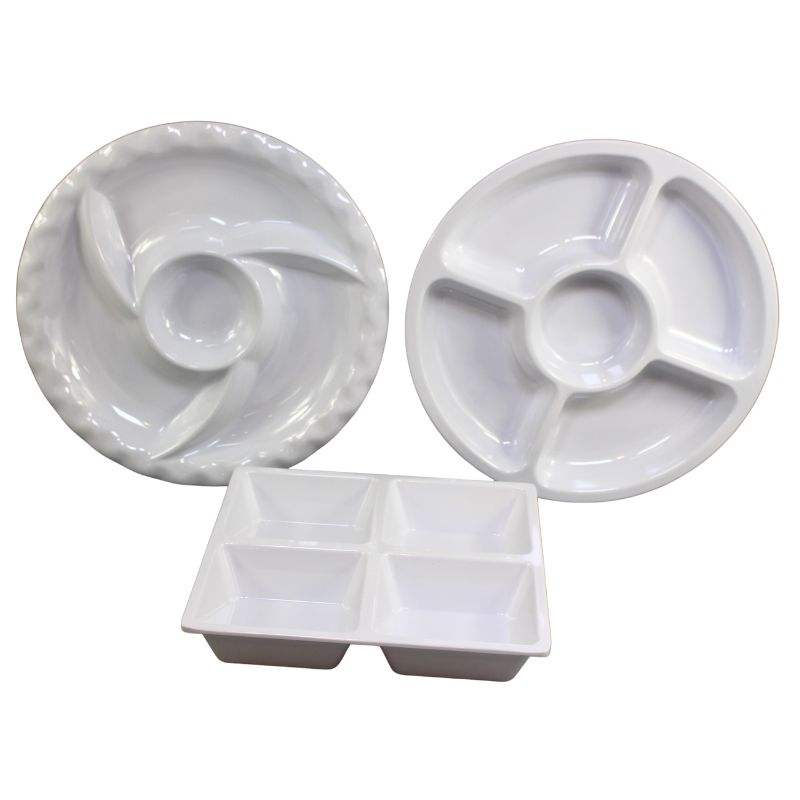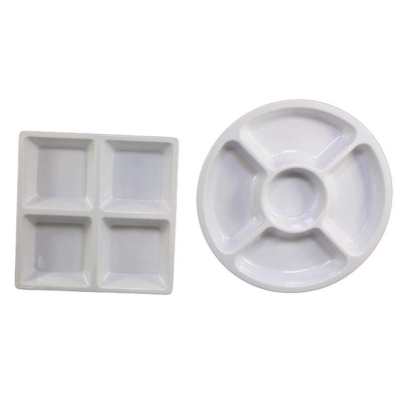 Piatto da portata in melamina diviso in sezioni quadrate e rotonde