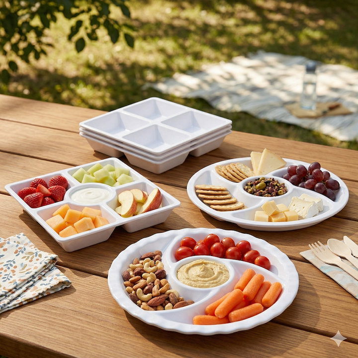 Vassoio per Antipasti in Melamina Senza BPA con 4 e 5 Scomparti per Snack