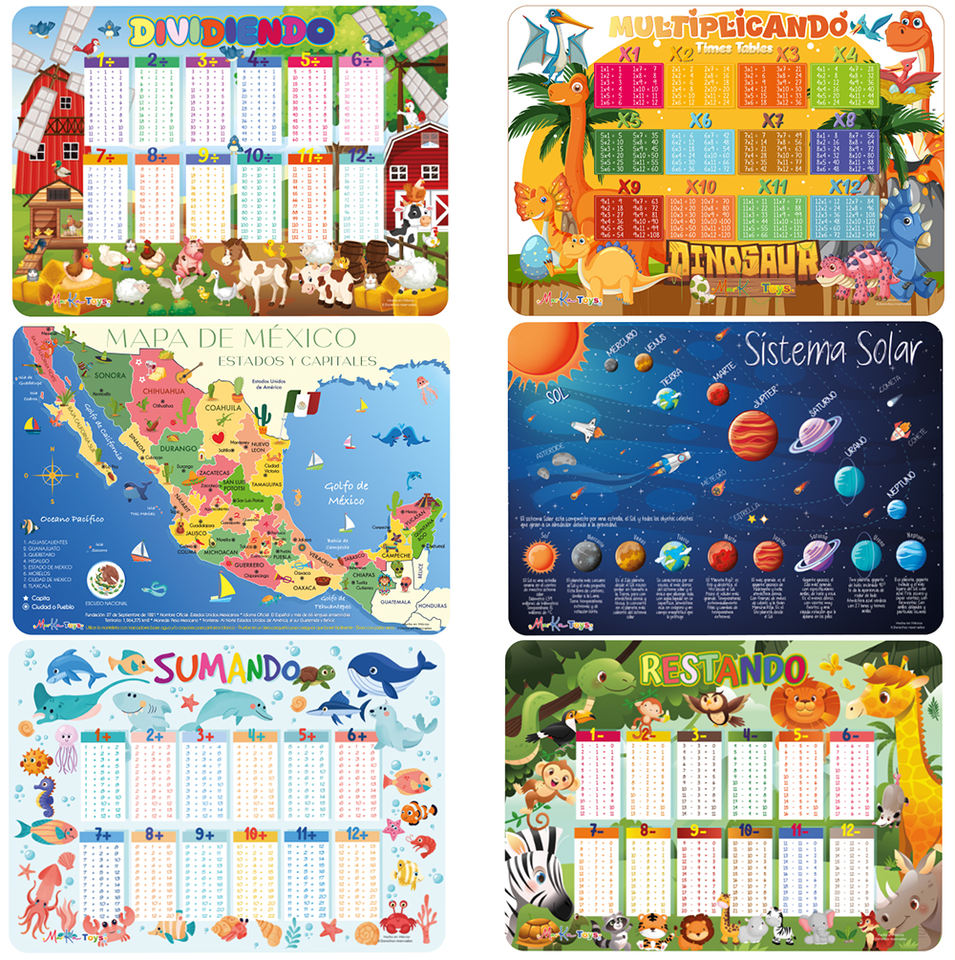 Dividendo, moltiplicando, mappa del Messico, sistema solare, aggiungendo, sottraendo, educativo interattivo