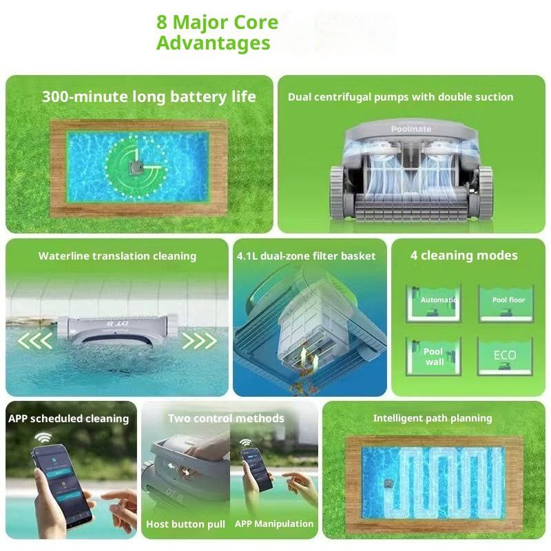 Robot Pulitore per Piscina a Forma di Delfino - Aspirapolvere Subacqueo Wireless per Fondo Piscina