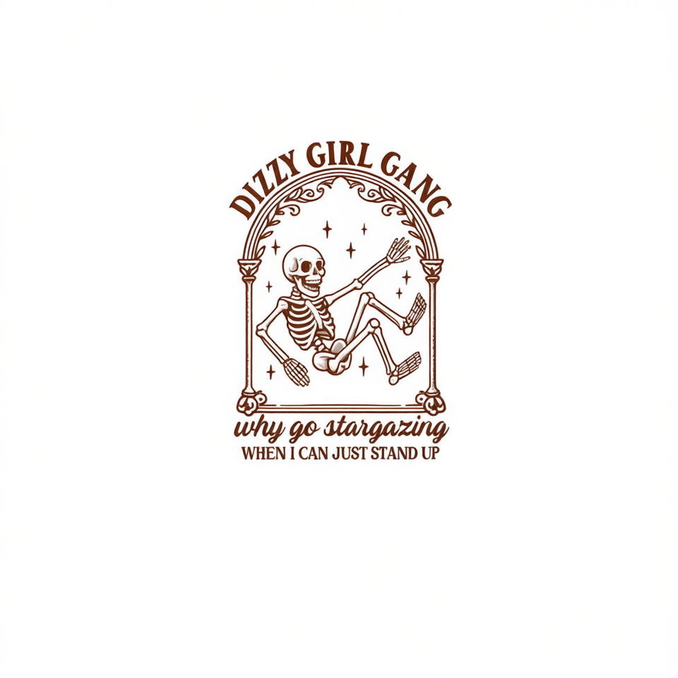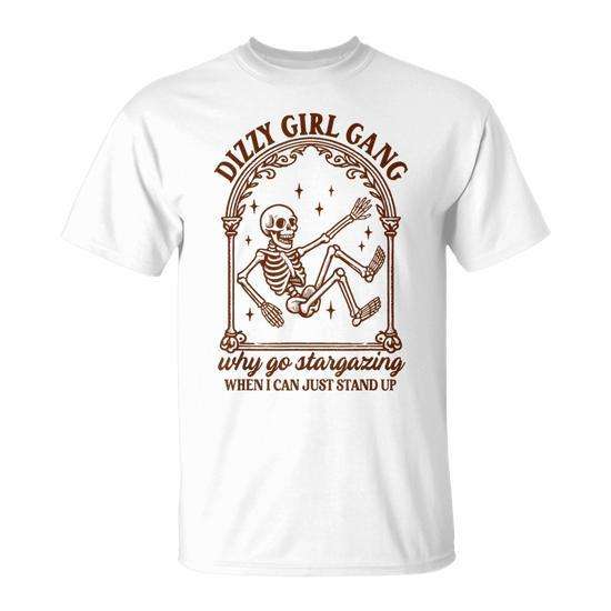 T-shirt Dizzy Girl Gang Skeleton Perché guardare le stelle, quando posso solo alzarmi in piedi, bianca, taglia unisex per adulti