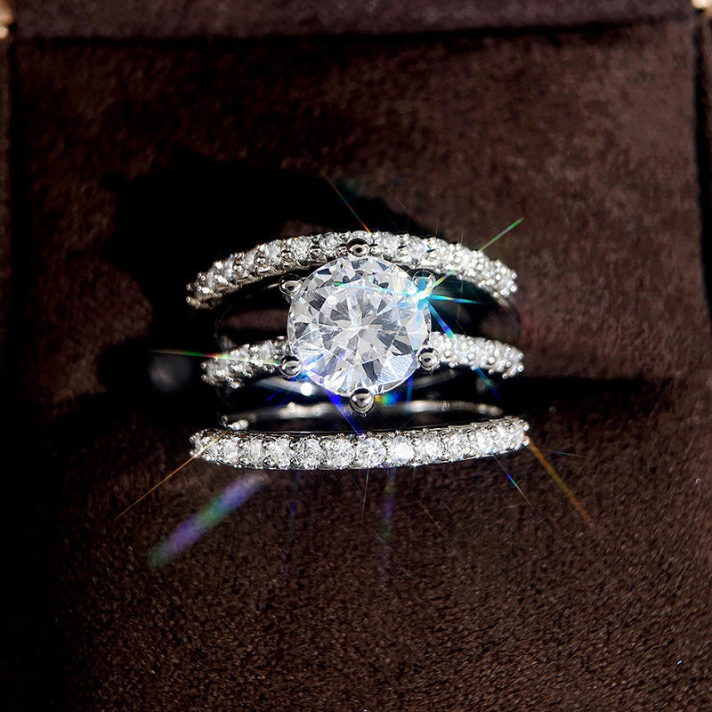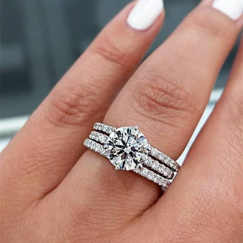 Dj042 Diamond Engagement Ring Women's White Gold Round Brilliant Cut Natural Diamond G Color Side Stone Wedding Band