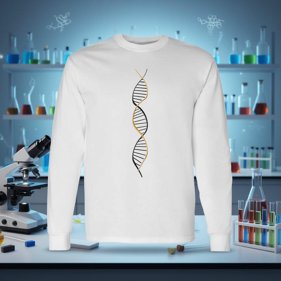 T-shirt a maniche lunghe con doppia elica di DNA, design scientifico di genetica, stampa digitale girocollo unisex per adulti