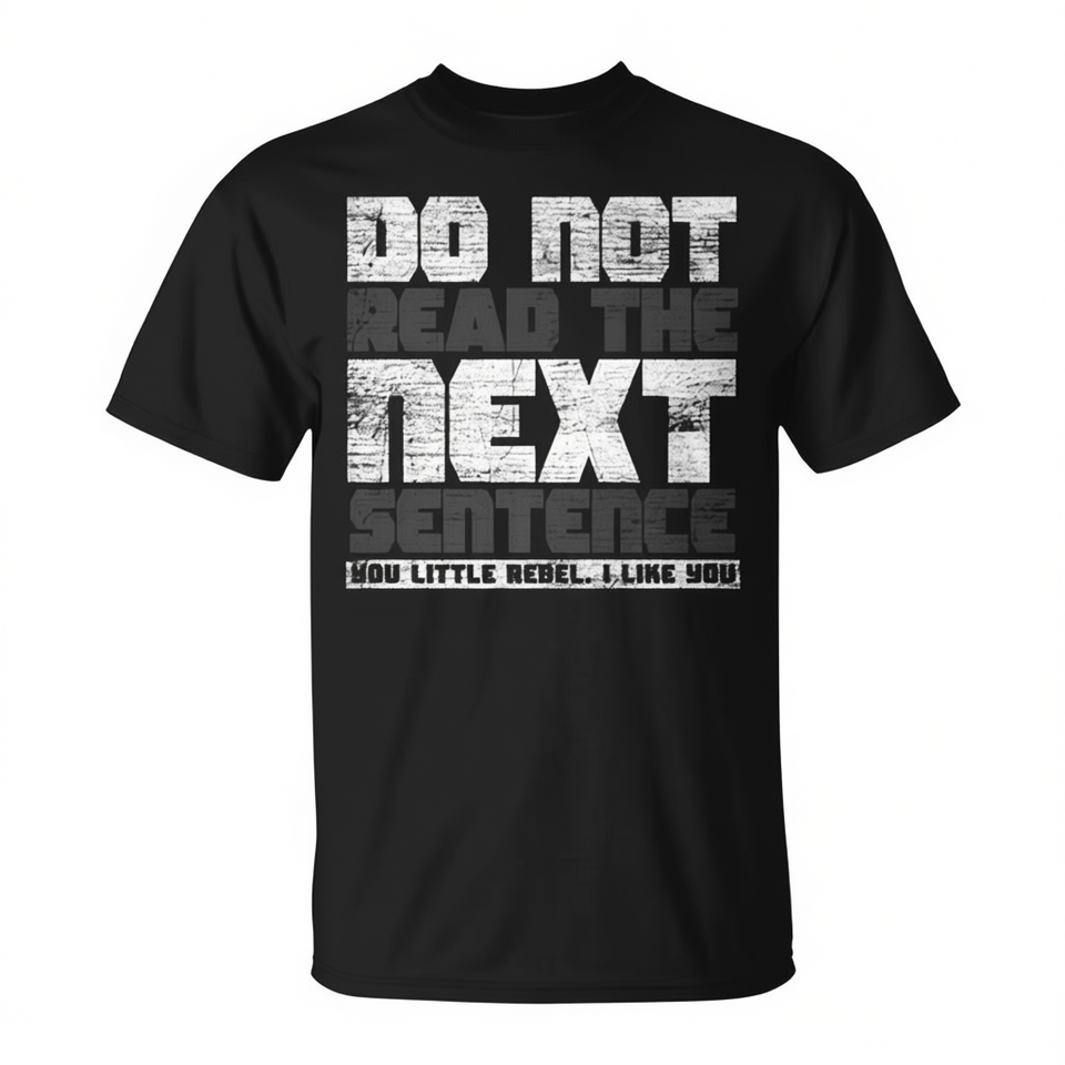 T-shirt 'Non Leggere la Prossima Frase' Nera Unisex per Adulti, Girocollo, Manica Corta, Stampa Serigrafica Promozionale