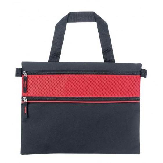 Borsa Portadocumenti Nera con Pannello in Rete Rosso, Scomparto con Cerniera, Valigetta per Affari