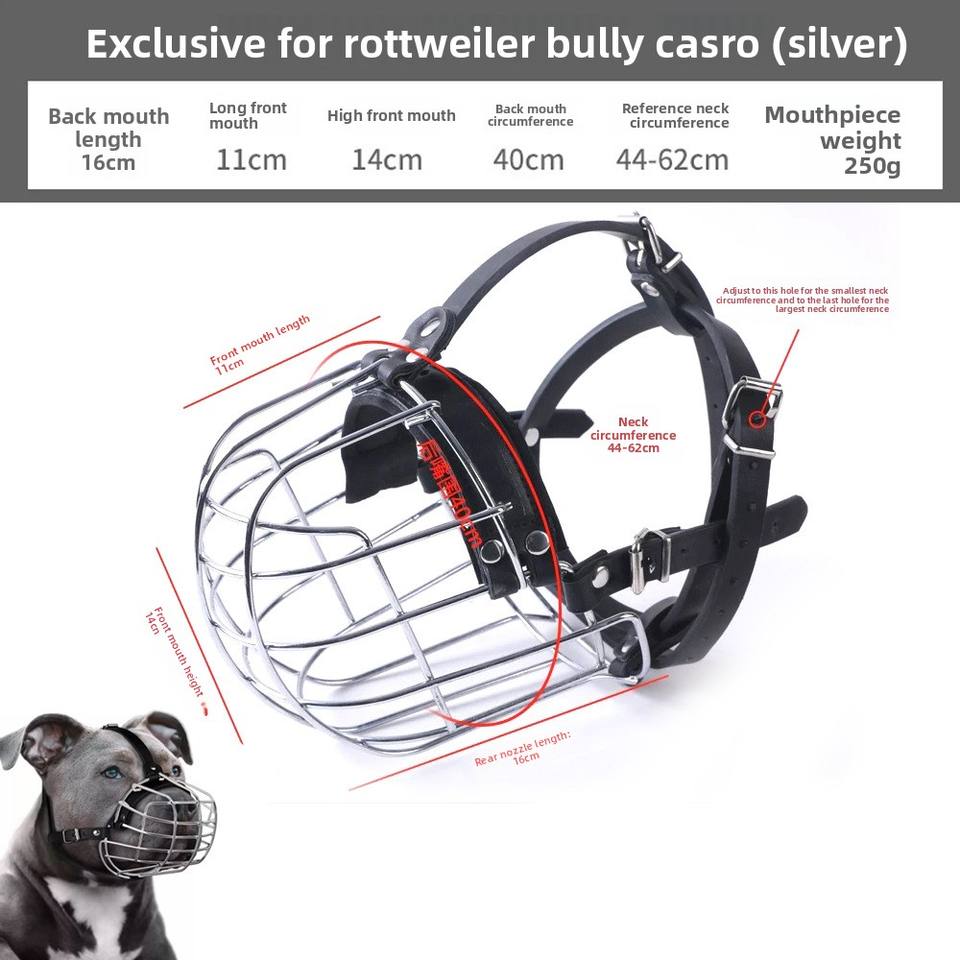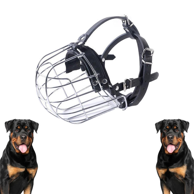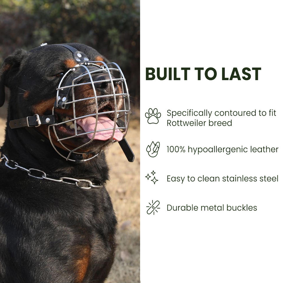 Museruola per Cani Baboney Anti-Morso, Previene l'Assunzione Accidentale di Oggetti, Chiusura con Fibbia, Materiale Zincato + PU per Rottweiler, Pitbull, Bulldog Francese