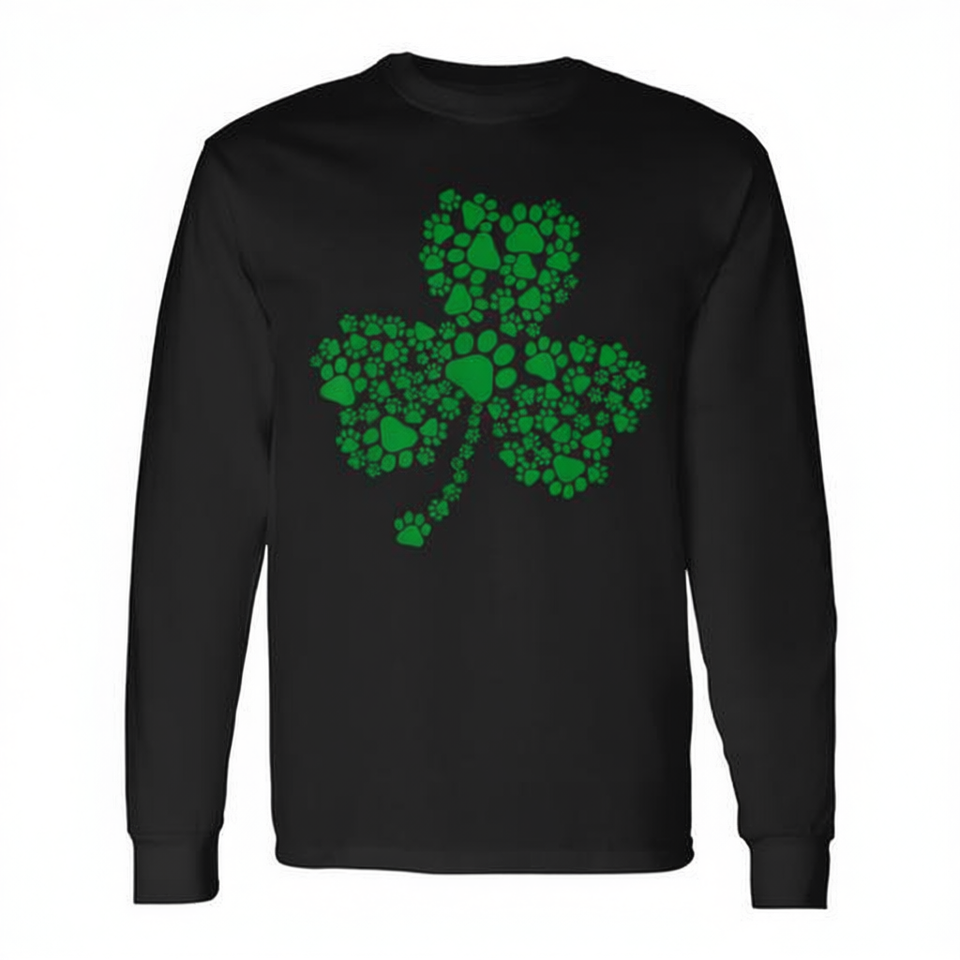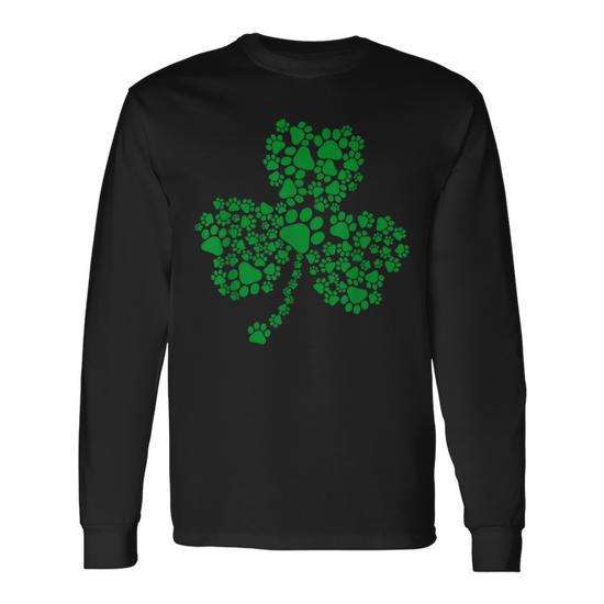 T-shirt a maniche lunghe con stampa di zampa di cane Shamrock St Patricks Day