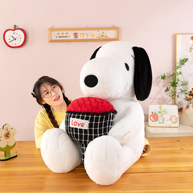 Peluche Promozionale a Forma di Cane, Regalo per San Valentino e Natale, Bambola Cartoon di Cane che Abbraccia un Cuore, Giocattolo di Peluche Cane Bianco