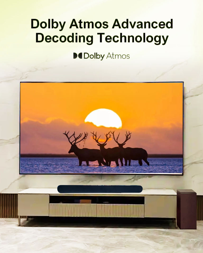 Soundbar Dolby Atmos per Dispositivi TV, Soundbar TV 3D 2.1 con Subwoofer, Barre Audio Bluetooth 5.3 per Home Theatre