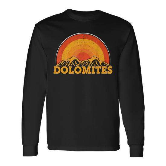 T-shirt a maniche lunghe in stile retrò per escursionisti delle Dolomiti, abbigliamento promozionale in stile retrò