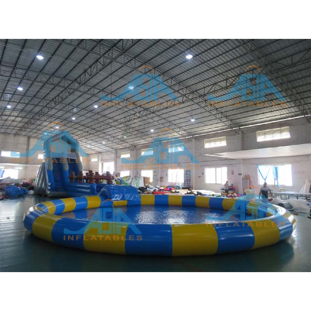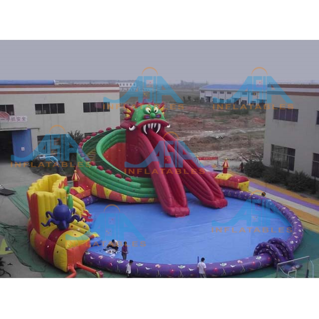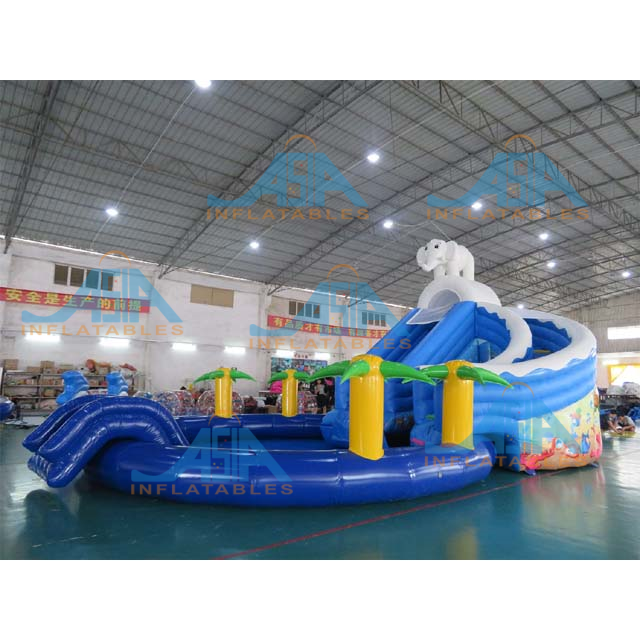 Dolphin Commercial Mobile Land Ground Inflatable Water Park With Slide & Swimming Pool