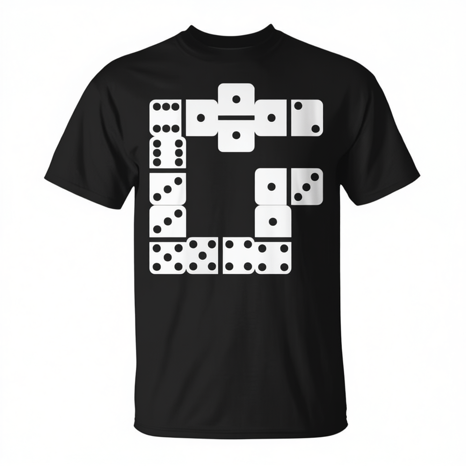 T-shirt Domino Game nera con motivo a dadi per abbigliamento casual