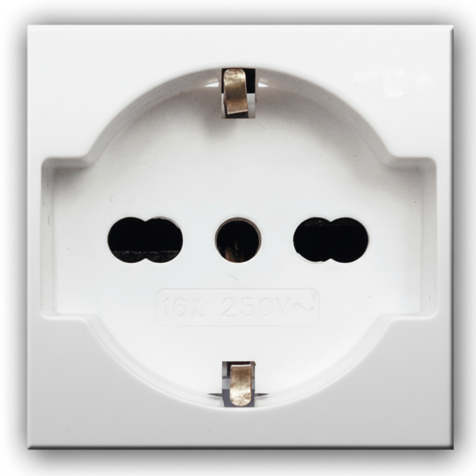 Domus S44 AVE Schuko Bipasso Wall Socket 1M Glossy Finish RAL 9010 Color 2P+T 16A IP44 Metal 10A/3A for Industrial Use EU CN