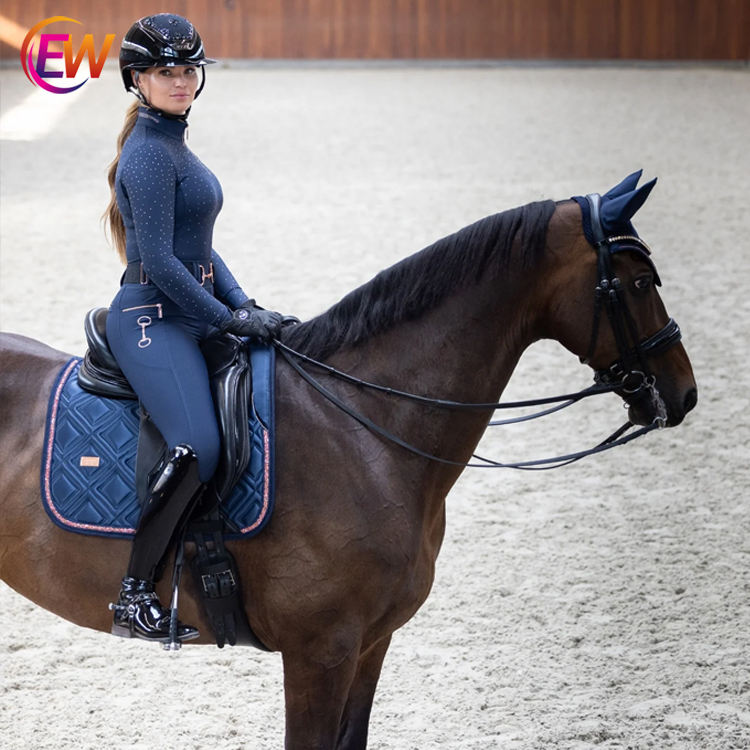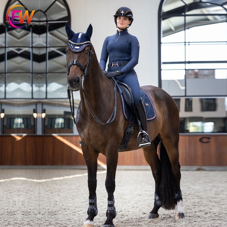 Maglia da Equitazione EW di Dongguan, Nuova Collezione, Maniche Lunghe, Base Layer Equestre, Blu Navy, Oro Rosa, Nero con Cristalli, Maglia da Competizione