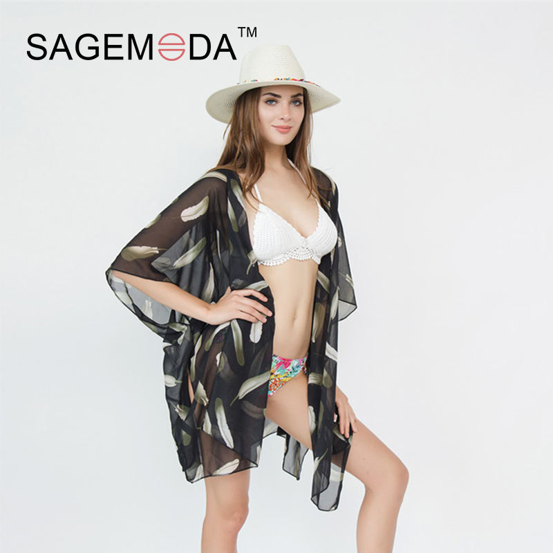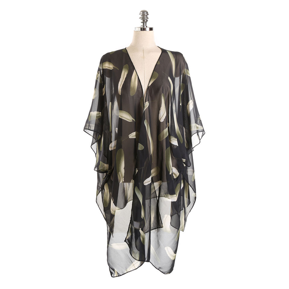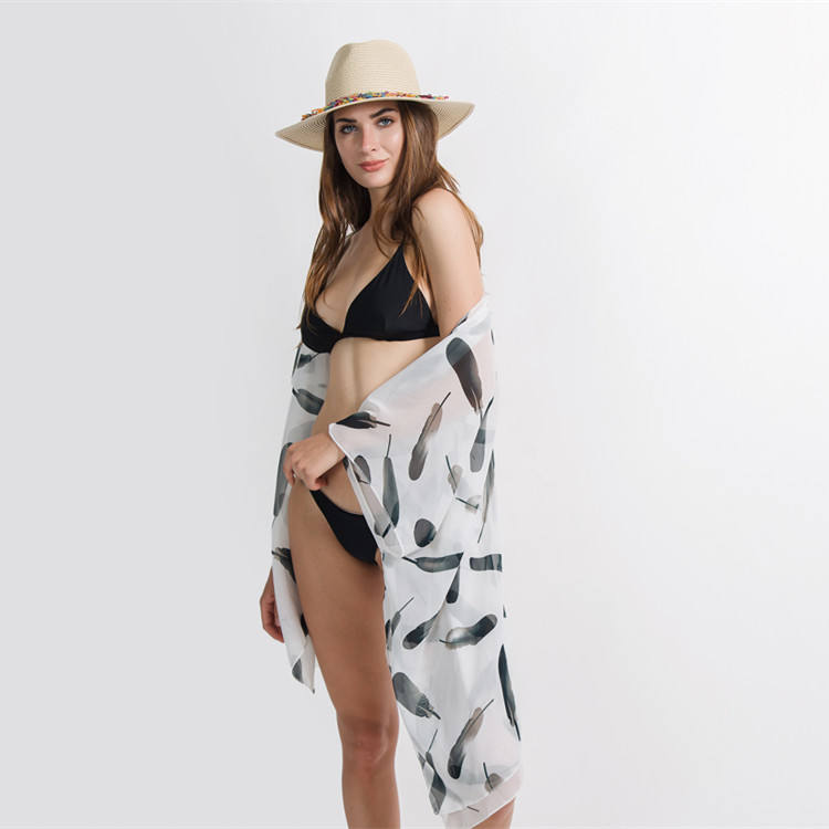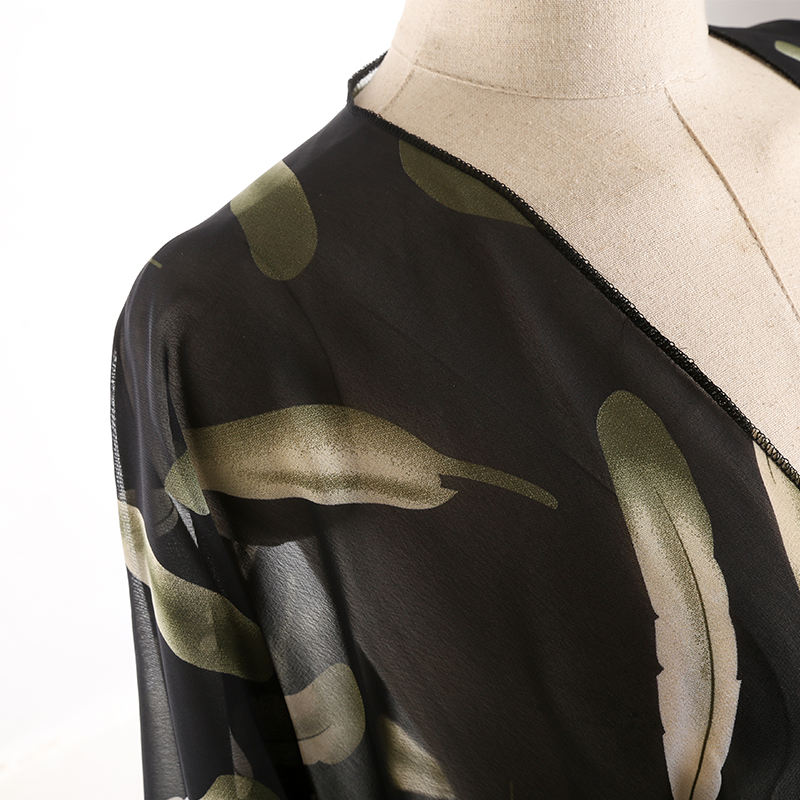 Donne alla moda Stampato Floreale Lungo Scialle Spiaggia in Bianco e Nero di Seta Del Kimono Dubai
